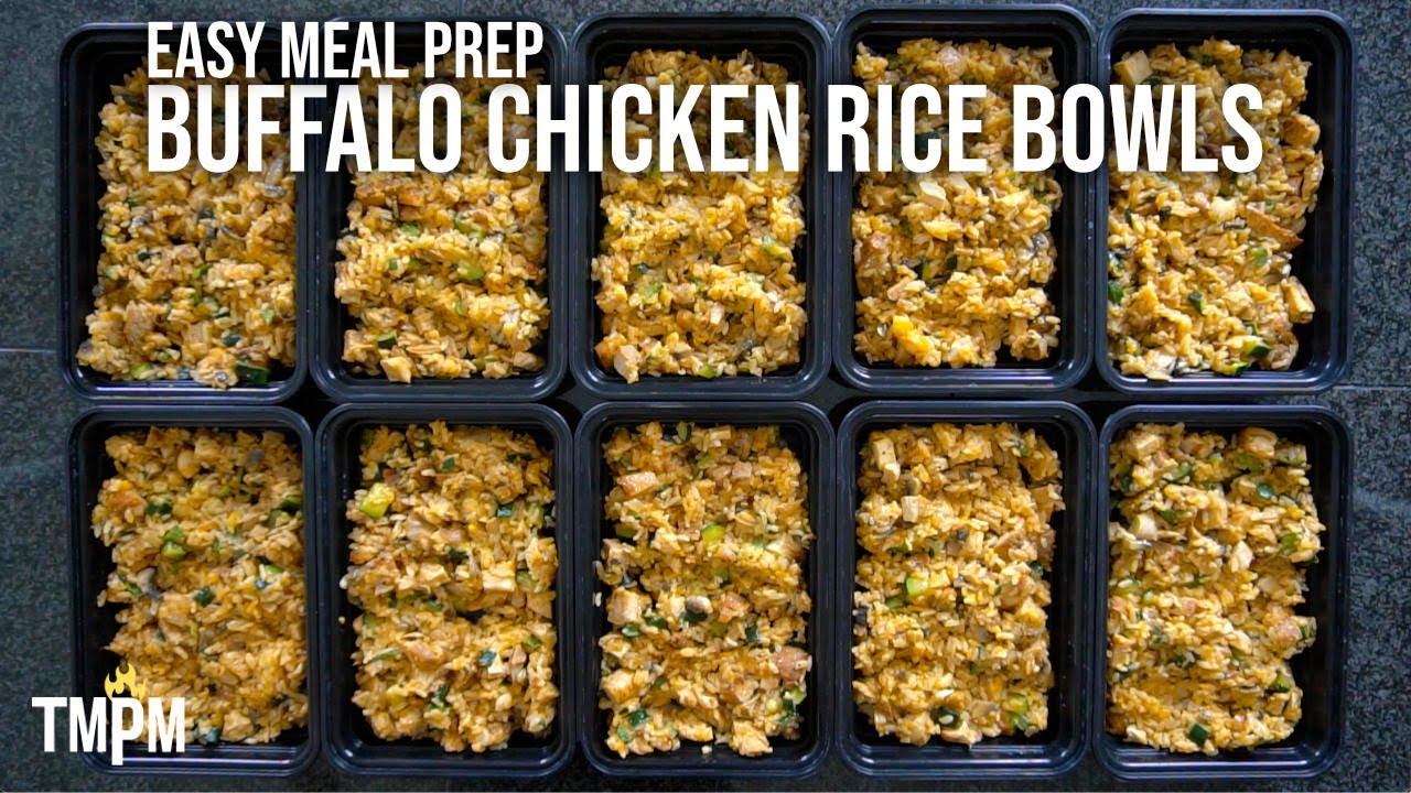 Divide the seasoned rice evenly among four bowls. Arrange buffalo chicken on top of the rice.