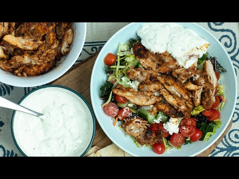 The primary video reference for this recipe. Covers the marinade ratios, skillet technique for chicken breast, and tzatziki assembly.