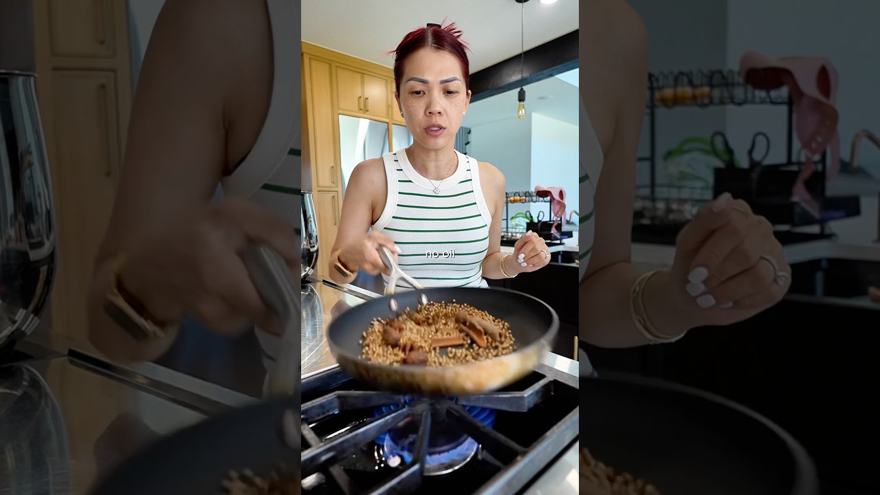 The whole spices — star anise, cinnamon, coriander, cloves — go into a dry cast iron skillet over medium heat for sixty to ninety seconds. Just long enough for the volatile oils to release and the kitchen to fill with their combined aroma. Pull them the moment you smell them. Thirty seconds past that point and you've crossed from toasted to scorched, and scorched spices turn bitter in long broth applications.